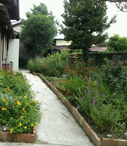 我が庭は ボルネオの荒れ地かと 人の問ふ自然に帰る さだめの庭なり (季語なし。爆) 画像は、koala家の庭の中では、ボルネオの荒れ地から割に遠い庭の部分。 田舎の家というのは、家の周囲は全て庭、という感じで作られています。私が嫁いできたとき、 畑以外の家の周囲は草ぼうぼうで、時々除草剤を振りかけて枯らしていたのに衝撃を受けました。家の横に物干し台のテラスがあって、その前が庭、という小さな庭の家に育った私の家は(母が脱サラした父に自営業に巻き込まれるまでは)季節の花が咲くきれいな庭でした。面積的に、母が片手間で世話できた庭でもありました。 しかし、嫁ぎ先は違ったのでした。草ぼうぼうも、除草剤で枯れた茶色の葉っぱが残る庭も嫌でした。では自分が何とかするしかありません。 画像は、オットの車庫に通じる道とその左右の庭です。 嫁いでから、自分で、レンガや化粧ブロックで少しずつ通路を作り、 花壇を作って花を植えました。近年、お風呂場をリフォームした際に、ついでに舗装してもらい、今はこんな風になりました 。こんな風、と言っても、最初の画像を撮影する前にはこれだけの下処理が必要でしたが・・・裏側暴露画像。(笑) 今月は、この小道の両側の花壇に少し花を植えようかなと思っています。 右側と左側のアップです。オットが通勤の時に歩くのと、私がお墓の花を替えに行く時の近道として使うくらいしか、歩かない小道なので、つい放置してしまう庭なのですが、長持ちで丈夫な花を植えこんで行こうかと思っています。 他にもボルネオのジャングルが点在しておりまして、そちらの野生化を少し沈静する作業をしつつの手入れなので、亀の歩みとなるでしょうが・・・・ここで宣言すればやるんじゃないか、私。(苦笑)