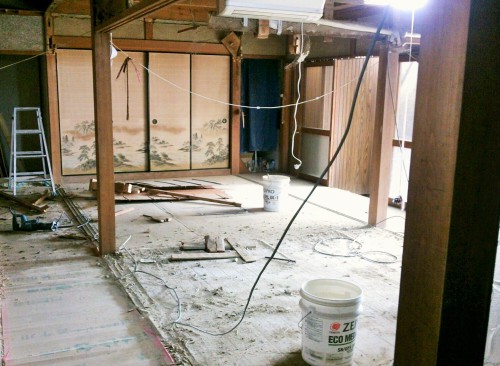 友人のお舅さんが亡くなったという知らせを受けました。とてもお元気なおじいさんで、みんなで100歳は超えるねと噂していたほどの方だったのに。実は私も、きっとこの方は100歳など軽くクリアされるに違いないと思っていました。心臓発作と肺炎で入院されていましたが、快方に向かっていると聞いていました。入院前まで、それはお元気なおじいさんだったのです。ご家族の方は呆然としておられるでしょうか。明日、お通夜に伺わせていただくつもりです。亡くなられた友人のお舅さんのことなど思い出すと、改めて、人の命も運命もわからないものだと感じました。シュウトメちゃんも、私が嫁いできた30年前と今では全然違います。もちろん30年経って何も変わらない人など存在しませんが・・・この家を建てた時の、若いシュウトメちゃんを私は知りません。でも、この家はシュウトメちゃんをずっと見てきたのですね。大工さんは、今日の作業は終わったらしく帰られました。画像の右奥にトイレがあります。茶色の壁はトイレに行く渡り廊下。渡り廊下はなくして、トイレを倍の広さにして、車椅子で、シュウトメちゃんの部屋からすぐにトイレに行けるようにします。右側の廊下はなくしてシュウトメちゃんの部屋に。代わりにふすまの前に廊下を作ります。それ以外の空間はシュウトメちゃんの部屋になります。左側の廊下と画像に写っていない手前の廊下は、少し高くしてシュウトメちゃんの部屋とバリアフリーに。廊下と部屋の間の扉の上には、土壁がありましたが、それを壊したので、すごい土ぼこりが出ました。この部分はすべて壁になります。こうやって見ると、廃屋みたい。手前はシュウトメちゃんの部屋ですが、硝子戸の向こう側は仏間です。今回、仏間には手を入れず、廊下に面した部分の壁はリフォームします。このガラス戸を、シュウトメちゃんも私も他の家族も懐かしく思い出すことでしょう。シュウトメちゃんの部屋の出入り口でした。元気だったシュウトメちゃんは、自分でこの引き戸を開けて、杖をついて出入りしていました。この戸は、バリアフリーの引き戸に替えます。この部屋は、シュウトメちゃんをずっと見守ってきてくれた部屋。オットが小学校の時に建て替えられました。オットや義姉たちが育っていく間、母として、泣いたり笑ったりしたシュウトメちゃんも、舅が重病で途方に暮れたシュウトメちゃんも、自分が脳溢血で倒れ、左半身麻痺で苦しかったシュウトメちゃんも、ここで笑顔で孫たちを抱いたシュウトメちゃんも、その後、老いて弱ってきたシュウトメちゃんも、ずっとこの部屋は、見守り、包み続けてくれたんですね。こんな風になった部屋を見ながら、少々センチになりました。