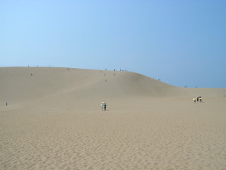 8月11、12日に山陰、鳥取・島根に行ってきました。その時の回想記を。今回は、夏の定番、青春18切符を使って行ってきたのだ。この切符は日本全国のJRを一日2300円で乗り放題の、大変ありがたい切符なのだ。学生時代によく利用させてもらいましたが、やはり夏になれば旅にでたくてしょうがなくなるのです。んで今回はJR時刻表を購入。実は時刻表を買うのはまったく初めて。今まではそんなもんなしで何とか旅してきたけど、JR西に就職した鉄道好きの友人が、時刻表あったほうがええで。てなアドバイスをくれやがったんで購入することにしたのでした。どれがええかわからんから、一番でっかい、よく駅とかに置いてるやつを購入。時刻表の読み方も分からんのやけどね。まあ、この時刻表が今後えらいお荷物君になってしまうのですが。山陰地方に行きたかったのは、鳥取砂丘に行きたかったから。そう、エジプトに死ぬほどあこがれているte-tsuyaとしたら、少しでもその気分を味わいたかったからなんですね。朝家を出発、大阪から姫路までは新快速でひとっ飛び。そこから上郡まで行って、智頭急行線で智頭へ。そこから鳥取までの移動です。鳥取砂丘なり!ちょっと感動。それにしてもこの砂丘、なめてかかったらえらい目にあいました。意外と広いんですよね。高低差もめちゃくちゃあって、高いとこまで行ったらそらもうへとへと。この日の気温は30℃を楽に越しるし日差しギラギラ照り照り暑い暑い。とどめは自分のかばん。くそ重い時刻表がどんどん体力を奪っていってくれましたよ。暑いんじゃ重いんじゃぼけ~ぐぎゃ~やっとの思いで高い丘に登って下を眺めると、なんと海見えるやん!日本海です。なかなかええ眺め。オアシスにたどり着いたみたいで一気に下って水にふれてきました。ええ気持ちでしたわ。ふーむ。本場の砂漠はもっと広大で想像もつかんほど大変やろうね。ちょっとその気分が味わえたけど、ますます行きたくなってきたぜ。私のやりたいことの一つに、ラクダに乗って砂漠を渡ってみたい、というのがあります。ターバンまいてね。今あほやこいつとか思った人多いやろうな。タクマラカンとかサハラ砂漠を横断するのだ(どっちもエジプトでないのは気にするな)で、くそ暑い砂漠を引き返し、名物梨ソフトを食いました。道の駅でも必ずソフトを食うし、旅にソフトは欠かすことできませんねん。で、暑くて疲れて死にそうやったから、かなりうまかったです。どこが梨なんや?と思うほどまったく梨の味はせんかって、普通のソフトっぽかった。また梨シェイクてやつも食ったけど、味忘れたわ。鳥取駅に戻って、次は米子へ移動。んでそこからかの有名な境港線へ。ねずみ男駅。境港の水木しげるロード。ゲゲゲの鬼太郎に出てくる妖怪の銅像が延々と置いてあり、妖怪の世界がひろがります。懐かしいやつがいっぱいおったわ。鬼太郎列車。外装もそうですが、列車の中も見事に妖怪だらけ。水木しげるのゲゲゲの鬼太郎の世界が存分に楽しめる境港線、行ってみてはどうでしょうか。境港線を後にし、今回の最終目的地である、出雲市駅を目指します。青春切符は普通車にしか乗れんから、ここが限界でした。で結構安いビジネスホテル4700円に宿を取り、一日目終了。