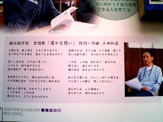 その中で姪っ子が高校受験するんだけど、姪っ子は空手大会で優勝するほどの腕前で、高校も空手が強いところに進学希望そんな中で候補に挙がっているのが横浜創学館高校。うん?なんか聞き覚えが~って思ったあなたはっすね!そうなんです、小田さんが愛唱歌「遥かな想い」をプレゼントした学校なんですその学校に姪っ子の空手の指導をしてくれた、憧れている女性が創学館高校で国語教師と空手の指導をしてるんだって。先日、姪っ子に会いに行ったら「おばちゃん、小田さんのファンでしょう!これプレゼント」と言ってプレゼントしてくれたのが、小田さんの愛唱歌と写真がいきなり1ページ目に掲載されている学校パンフレットビックリしちゃったわ学校説明会に行ったら、説明会の間中ず~っと愛唱歌が流れていたんだって。愛唱歌としてこれからもず~っと学校で大切に歌い継がれていくのってステキだねぇ