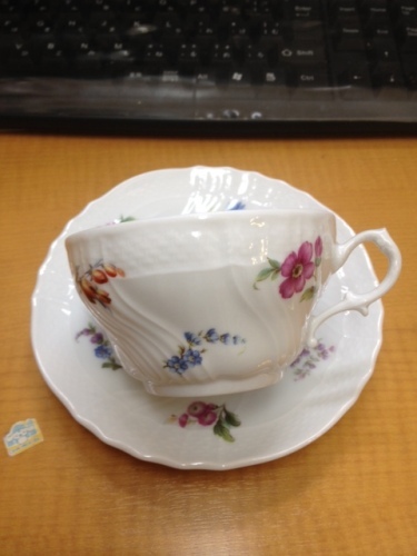 最近どうも食器棚が狭くなってきた感じがするので、一度手持ちのカップを並べてみました。ついでに、万が一自分の身に何かがあった時の為に、家族向けへの記録もかねて銘も書き連ねてみます(苦笑)(画面左上より、時計回りに) ・ワイルドストロベリー ティーポット(S) ・ブラックパラティッシ トリオ(ティーカップ&ソーサー、21cmプレート) ・オールドノリタケ クリーマー ・レヴォンチュリン(カイ・フランク) デミタスカップ&ソーサー ・パープルパラティッシ トリオ(ティーカップ&ソーサー、21cmプレート) ・青い花 ティーカップ&ソーサー ・シリーズ名不明のティーカップ&ソーサー(ベッキオホワイトに数種の花柄) ・ワイルドストロベリー ティーカップ&ソーサー ……………4人家族で来客ほとんどないのに、なんでこんなに持ってんでしょうね(遠い目) 将来的に長男か次男が、うまくこっち方面に興味持ってくれればいいんだけど(--;