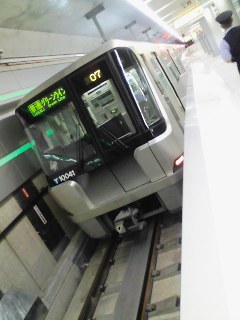 開通してからはや2週間ちょっと経った市営地下鉄グリーンラインにやっと乗りました~っていっても夜だったし雨だったので景色はまったくわからなかった(-_-;)しかも途中から乗ったので全駅を乗り降りして撮影大会をするのはまだ先のことだわ~今日の強風は今までのよりもよりパワーアップしてたわね(-_-;)もう髪とか服とか気にする以前にまっすぐ歩くって事に集中しないとダメだったもん。で、中山駅から先頭車両をパチリ。全駅にその駅のイメージカラーみたいなのがあるらしい。一体何のためなのかしら…車内は当たり前だけど綺麗。結構横揺れがすごいなぁ。作ったばかりとは思えないんだけど…中山駅を降りて改札に向かう途中のエスカレーター。結構長い!みなとみらい駅とか大江戸線みたいな深さだ…ちょと地下嫌いな私としては怖い。そんなこんなで今度は晴れた日に一日かけて(そんなに時間いらないけど…)全駅回るんだ~♪明日は法事なので早く寝よっと。皐月賞間に合うかなぁ~~~~