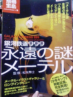 先週あたりだったと思うけど、他の目的で行った本屋でつい買ってしまいました(^_^;)これ1冊で、メーテルの謎がそこそこわかるという事でしたが、メーテルのことはうっすらとわかってきても、他の人物関係図がたくさん出ていたせいで、かえって頭が混乱してきちゃったんだけど…(~o~)それはともかくとして、エターナル編の続編(劇場版)を早くやってくれ~~~だって、太陽系が無くなったんだよ?!そんな大変な事態で途中で話が進まなくなったら困る!ものすごい消化不良になるもんね今スカパのアニマックスCHでまた999が放映されてるんだけど、連動企画でアニマックスのサイトでは999クイズなんてのもあって応募しまくってますが当たりません…くーっ楽天でも私が買った本は売ってました興味のある方はぜひぜひ!!銀河鉄道999永遠の謎メーテル