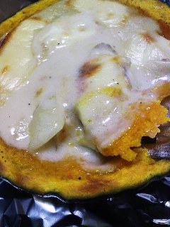 なんだかすっごいどたばたになってます(^_^;)風邪はいまいちだけど、熱がないので大丈夫!今日はハロウィンだったけど、どうもハロウィン=かぼちゃ食べる日という認識しかない私…そんなわけで今日は坊ちゃんかぼちゃを使ってまるごとグラタンっぽくしてみた。これが一番好きな食べ方かも。煮物とかは毎日食べてるから飽きてきちゃったし、焼くだけってのが簡単でいいのよね!そんなこんなでまたしても書きたい事の1割も書けないのでありました~今週もまたネタが溜まってますだ明日も頑張るぞ~~~