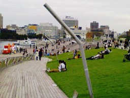 今日は仕事からめて赤レンガ倉庫行ったですよ!<やや知能犯気味その前には大桟橋へも行ってきた。赤レンガ行くなら、大桟橋はツインでしょ<これも知能犯気味まあ人がすごいのなんの。いつも空いている平日か、夜しか行った事がないからこの人ごみはびっくりした。しかも皆芝生には入らないでって看板無視。大桟橋の担当者ももうちょっと取り締まればいいのに…昼寝はするわ何か食うわで、マナー悪すぎます。今朝はピーカンだったのに、大桟橋へ着いたころは雲が多くなっちゃってあまり綺麗に撮影できなかった~とか言いながらも結局めちゃめちゃはりきって撮影してた。 その後は赤レンガ倉庫へ。プロムナードの工事も終わって、すっかり渡れるようになって良かった♪赤レンガ倉庫はすごいことになってました。まずオクトーバーフェスタの入口で入場を待つ列がすごい。しかも係員がビールを買うまでに30分かかるとか言ってた。しばらく入場はあきらめて、その後入場。今度は会場内の混雑がすごい!さすが3連休だわ~ビール買うのも、ソーセージ買うのも、列ばっかり。座る席を探すのもこれまた大変。早く座らないとビールの泡が消えるよ~って感じ。 周りはこんな感じ。ソーセージは撮影したけど、すっかり辺りが暗くなって何だかわからないね(笑)ちなみにベルリンソーセージというのを初めて食べたです。白焼きソーセージにケチャップとカレーパウダーをたっぷりかけて味付けするベルリン発祥のものなんだって。後は骨なしアイスバイン、ロングウィンナー、ジャーマンポテトなどなどの盛り合わせで、結構なボリュームでした~日本のよりも皮が薄くてお肉がジューシーで柔らかかったです♪ちなみに飲んだビールはエルディンガーのデュンケルビール。やはりこの時期は黒ビールが美味しい。…でも1杯1300円です…高すぎます。ソーセージ盛り合わせは2000円です。高いっす。お財布がからっぽになり1杯だけで退散です。とほほ…何度かバイエルンの民族音楽演奏などがあり、テントの中はえらい盛り上がってた。私は中ではなく、外の席をどうにか確保したので、もう中の様子は見えず、大歓声の声を聞くだけだった~そんなこんなで仕事して今に至ります(^_^;)