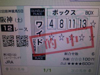 先々週からの競馬をまとめてぷち回顧(阪神大賞典)惜しかったね~ △◎かぁ~かろうじて馬券はゲット。ナムラクレセントは、ステゴ臭とかカンパニー臭がするっていうか、かなり遅咲きな感じで、今年はもしかしたらこの先の活躍も期待出来るかも。和田Jが大舞台出てくるのも久しぶりじゃないかしらっそれにしても今年の天皇賞・春は、混戦模様みたい。本番はどんなメンバーが揃うのかな。(阪神スプリングジャンプ)うわぁぁぁ~!!!オープンガーデン勝った~!!!マジかよ、キクリン!超めでたいじゃん!←実況聞いた直後の心境さすがゴーカイの仔。馬場が渋ったのもあって、よー走る!障害馬で親子ワンツーって、まだ珍しい部類だけに、この勝利は嬉しいね。障害専門血統なんてのもあっても良いのじゃん。キングジョイは映像を見た所、途中までは良かったんだね。GI馬とはいえ、久々ではちょっと動きが重かったかも。1頭だけ別定62キロだし、体重も重そうそうだった。それでも5着。掲示板死守したあたりはさすが。(フィリーズレビュー)◎▲で快勝!(^^)!馬券ばっちり。うまいなぁ。私ったら。天狗状態復活!それまでの負けも取り戻してしまいました~(^_^;) 募金になってない…最終オッズではフレンチカクタスは3番人気に!反対にドナウブルーのオッズが徐々にあがってた。馬場が悪かったし、ディープインパクト産駒といっても皆が期待しすぎている感があったので、4着にきただけでも充分かと…1着2着が関東の騎手というのも、素晴らしい!今開催は輸送可能な馬が西へ行ったということで、気合の入り方は凄かったかと思うの。西高東低気味なレース結果が多い中で、関東も頑張れば出来るというのが見えて嬉しいよね~(名古屋大賞典)で、フィリーズレビューと平行して、パソコンでは名古屋競馬をチェック。エスポワールシチーがどれだけ圧勝出来るかを見るレースとして楽しみにしていたのですが…ネットで見ていたから回線がいまいちで、肝心のレースはブチブチと映像が切れてた(^_^;)ゴール板手前だけは、しっかり見えたので良かった良かった。単勝110円ってのは、何だか意外。元返しだと思ってたのにぃ~っていうか、だったらエスポに1万→1万1千円返ってくるというのは、なかなかだったのでは…次はかしわ記念→帝王賞、なんていう流れだったら、大井でエスポに会えるかも。楽しみっ!!(高松宮記念)妙な予想の通り、△○で的中といっていいのか怪しい感じ(^_^;)早々と結論!サマーウインドはダートで頑張るのがいいっレース後のユーイチのコメントで「芝が合わないわけではない」ってあったけどダートの方が合っていると思う(^_^;)パドックでも歩様がどうもいまいちだった。「これは(馬連)流せない…」と思いつつ、予想に忠実に買って惨敗。サンカルロはめっちゃ良かったね~気づけば関東馬のワンツースリーという、珍しい結果に。そりゃ力入るよね。関東頑張らないと。そうそう、ヘッドライナー@幸くんが序盤はいっぱい映ってたのでそれは良かったぞと。ダッシャーゴーゴーはまたまた降着~翌週には川田はビックウイークに乗る予定だったのに、何とも残念。(毎日杯)こちらも△○で的中とは言い辛い結果に(^_^;)レッドデイヴィスはセン馬ってのが、本当に勿体無い。戦ってきたメンバーを見ても、これが牡馬だったら間違いなくクラシック路線へ進めるのに。この前シンザン記念を勝った後で、よしだみほ先生が漫画にした内容がお笑いタッチ色が濃いけどなかなかええ話だった~エリモハリアーとの心温まる(?)お話の巻。オルフェーブルもわんぱくキャラで出てた。第588R とっちゃってても! の巻第597Rは、震災後の記事。よしだ先生ならではの馬の視点からの巻だった。美浦もあの時は断水や停電で大変だったそうで…だけど馬は取り乱す事がなかったんだって。馬用の飲料水などは確保出来ていたらしく、事故などなくて良かった。そんなこんなで気付けばもう週末だった(^_^;)今週の阪神も重賞三昧。明日(もう今日)はローズキングダムとセイクリムズン@幸くんの応援に忙しいっそして日曜はドリームージャーニーが出るしっ(日経賞)◎トゥザグローリー○ビックウイーク▲ローズキングダム△マイネルキッツ△ペルーサどうも今週の調教がぱっとしなかったんだよね~先週は良かったのに…短期放牧明けだし、59キロだし、ここは無理せず走ってくれれば良しとしたい。トゥザグローリーの調子の良さを見ると、◎にしざるを得ない感じ。ペルーサも人気になりそうだけど、こちらも調教がいまいち。~買い方~ローズキングダム 複勝のみ本当はこの程度の斤量でへこたれる事はない馬だと思ってる。頑張ってローズ~~~