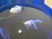 我が家にはガラスのボールを住処とした食欲旺盛な金魚が一匹いる。名前はまだ無い。長男が今年6月の地元のお祭りですくってきた金魚さ。金魚すくいの屋台から2匹を連れて帰ってきたのに、一匹は次の日すぐに昇天。我が家で生き物を飼うのは、これが始めて。水槽など買うつもりもなく、ましてや酸素を送り込むモーター?(言い方知らなくてごめんね)そんな物も買うつもりも無い。昨日まで果物が入れてあったガラスのボールに入れてやった。金魚ってこんなによく食うの?フレークになった餌をやるとすごい勢いで食い付いてくる。餌が足りないのか一緒に入れてあった水草を食う、食う、食う。すっかり茎だけになった水草。可哀相…。そして半年経った今も、すっかりデブになった金魚は相変わらずの食欲を見せています。いったい金魚って、どれ位生きるものなの?そろそろ水槽に入れ替えてやったほうが良いのでしょうか?そうそう、名前も無いのでよかったら皆さん付けて下さい。可愛い、面白い、あきれた名前を募集します。宜しくね☆