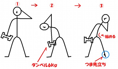 本日水曜日、いつもはししゃもっ娘クラブで足揉み会ですが本日は場所確保ができない為にお休みです。来週から始めます。なので、ジムへ行って来ました。まずはローインパクトのクラスから。イントラ様は同じマンション群にお住まいの三ちゃん先生腰の低い感じの良いイントラ様です。参加メンバーの一人一人に声をかけて挨拶してくれます。以前に数回受けた事がありますが、実はあまりのれないレッスンです。その…なんと言うか…お決まりのコリオで。グレープバイン、ニーアップ、Vステップ、レッグカール…でも久々に受けてみたら、コンビネーションよく考えてあって意外と楽しく動けました。翻弄されるって感じではないけど、集中して出来たのは、やっぱり以前と違って内容が濃いからでしょうか汗もよくかいたしな~45分クラスなので、あっという間~さあこれからジムエリアでマシントレーニングです。アブベンチで腹筋運動/アブドミナルでさらに腹筋運動/ロウイングで大胸筋と広背筋を/上腕三頭筋を鍛えるマシンetc...そして意外と好きなのが、ダンベル持っての体側引き締め久々に棒人間描いてみました。動きは絵の通りダンベルは4キロから始めましたが、6キロくらいがおばさまには調度良いこれが結構効いて、今…筋肉痛がやってきています。とてもいい感じ~少しずつ、以前の感覚が戻ってきてるきがするこの調子でスタジオで有酸素運動、そしてマシンで筋トレをこなしていけば年末年始で弛んだお腹の脂肪達は、燃えてくれることでしょう明日はヘソピー先生のターンが多くて、目が回るクラスがあります。日々精進のおばさまは、ガッリガリになる予定。…未定。。