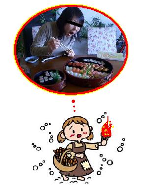 マッチ売りの少女は、マッチに火を灯し灯りの中に現れる美味しそうなごちそうの夢を見ておりました点いては消えてしまう夢のごちそう。。そして何本目かのマッチを灯した時…5人前はあるにぎり寿司を前に大口を開ける…ある人が浮かび上がりました。声まで聞こえてきます。大口ナッツ『たまにはいいよね~豪勢だね~』腹減らしachan『雲丹とイクラのこの一列は私が全部食べるから』おばさま『沢山お食べなさい今日はサークルスタッフの慰労会じゃ~』美味しいお寿司を頬張りながら、三人は『夏のダンスイベントまでには、ガッリガリに痩せてないとね~』そんな話しをしておりました マッチ売りの少女は…そのマッチの火を急いで吹き消しましたとさ。。-Fin-