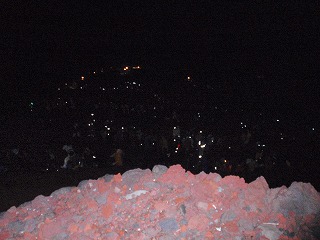 黎明様は登山後、どんどん進化されていかれました。おめでとうございます!!わたしは、ようやく日記をつけ始めたところです。まずは、ご来光の写真から水平線のわずか上に雲がかかっており、その隙間に太陽さまが顔を出されたところです。その雲の上に太陽さまが顔を出されたところ。拍手が沸き起こった。黎明様の写真とほぼ同じです。比較してみてください。(感激)わたしのブログ人生で初の画象アップでした。(感激)新宿西口15:40発の富士急バス富士山5合目行きに乗りました。徹夜で登るので、バスでは寝て行こうと思っていたのですが、新幹線でもバスでも寝られなかった。予約したバスは2号車で、後ろがすいていたので、勝手に後ろに座った。外国人が3分の2もいた。シンクロその1薄暗くなって富士山が見える距離になったので、先月娘が買ったばかりのオリンパスの「ミューなんとか」というデジカメで写真を撮ろうとしたらうまく撮れなかった。すると、後ろのアメリカ人が「フラッシュをたかないで撮れ」と教えてくれたので、(もちろん英会話でやんす)そうするとうまく撮れた。さらにそのアメリカ人は「あんたはいいカメラをもっているよ。それは最高だよ」と話しかけてくるではないか。「ほんとうか?」と聞くと、「ほんとうだ」と答えるではないか。「なぜだ?」と聞くと、「おれはオリンパスの社員だ。6ヶ月前アメリカのニューヨークから来て幡ヶ谷で働いているんだ」というではないか。というわけで、大笑いしながら雑談をした。iPhoneやコンピュータや旅行した国々や映画の話で盛り上がった。もちろんこのデジカメの使い方も教わった。そうこうしているうちに8:30富士山5合目に到着。30分間、5合目の気圧に慣らそうと思ったが、なぜか15分くらいで出発した。あとでこれが良かったと思った。ところが、6合目を過ぎたあたりで、左足のふくらはぎがつった。2、3分休憩して登り始めると6.5合目あたりで右足のふくらはぎがつった。「こりゃ~とてもじゃないが、頂上は無理だ。」と思ったが、足の裏全体で踏みしめながら歩くとなんとか歩けた。そうこうしている内に、7合目に到着。山梨県側の下界や満天の星さっそくアメリカ人から教わったデジカメの操作で撮った。ピンボケだった。あまりの星の多さで、北斗七星やカシオペア座を探すのが難しいくらいだった(ちょびっと大袈裟かな)8合目をすぎると、頂上まで人のヘッドライトの列だ。8合目から山小屋がないので良くわからないのだが、9合目過ぎたあたりからは、みんなばてはじめて、数歩あるいたら列が止まる。そうこうしている内に、夜が白み始めた。あと100メートルくらいで頂上だが、列は進まない、足は痛い、空気は薄い、で「このままご来光を仰ぐしかないか」と思い始めた。その思いはみんあ同じとあって、急に列が進み始めた。黎明様が書かれていたとおり、進めない人は、道をゆずってくれた。「なんとか、頂上でご来光を見たい」という想いがエネルギーになり、4時ちょうどに頂上到着した。<つづきはまたあした>