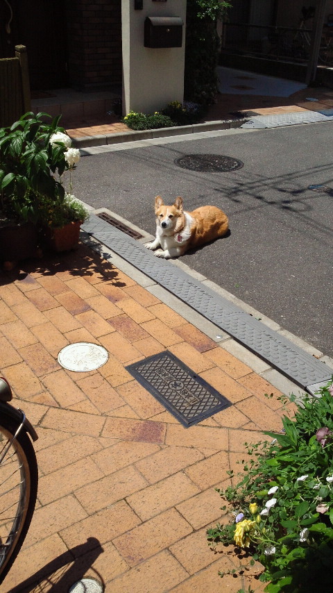今日は車でお出かけしていたご近所さんが帰ってきて後ろから着いてきているにもかかわらず、のたのたと歩いてました