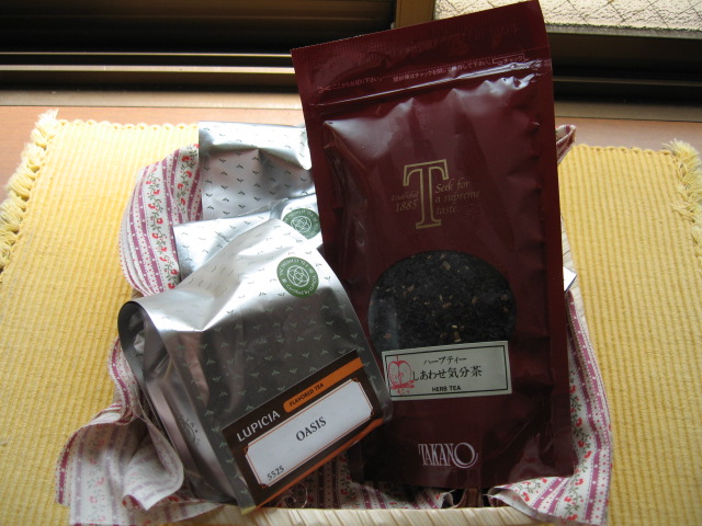 先日頼んでおいたレピシエのお茶が届きました。鹿児島市にもお店はあるのですが、出かけるまでがたいへんなので、ネットで頼みました。6000円以上は、送料無料です。今回は、お友達のお祝いの品物もあったので、送料はかかりませんでしたが、送料もバカになりません。最近、暑い日が続くので、今回は、アイスティーでいただけるものを中心に頼みました。マスカット、グレープフルーツ、ライチ、グレナダ、オアシス、あとは、ニルギリです。私は、基本的にレピシエでは、50g600円前後の商品を頼むことが多いです。写真右手前の紅茶は、以前購入して最後のひと袋となった新宿高野の紅茶です。こちらは100gで700円と、とてもお手ごろ価格で、気に入っているのですが、山形屋まで買いに行かないといけないので。。。。あとネットで注文するのは、送料無料の中国茶王国それから、やっぱり送料無料のシルバーポット送料無料は、頼みやすいですよね。○○円以上無料となっていると、ついつい無料にしたくて、今ほしくないものまで買ってしまいます。