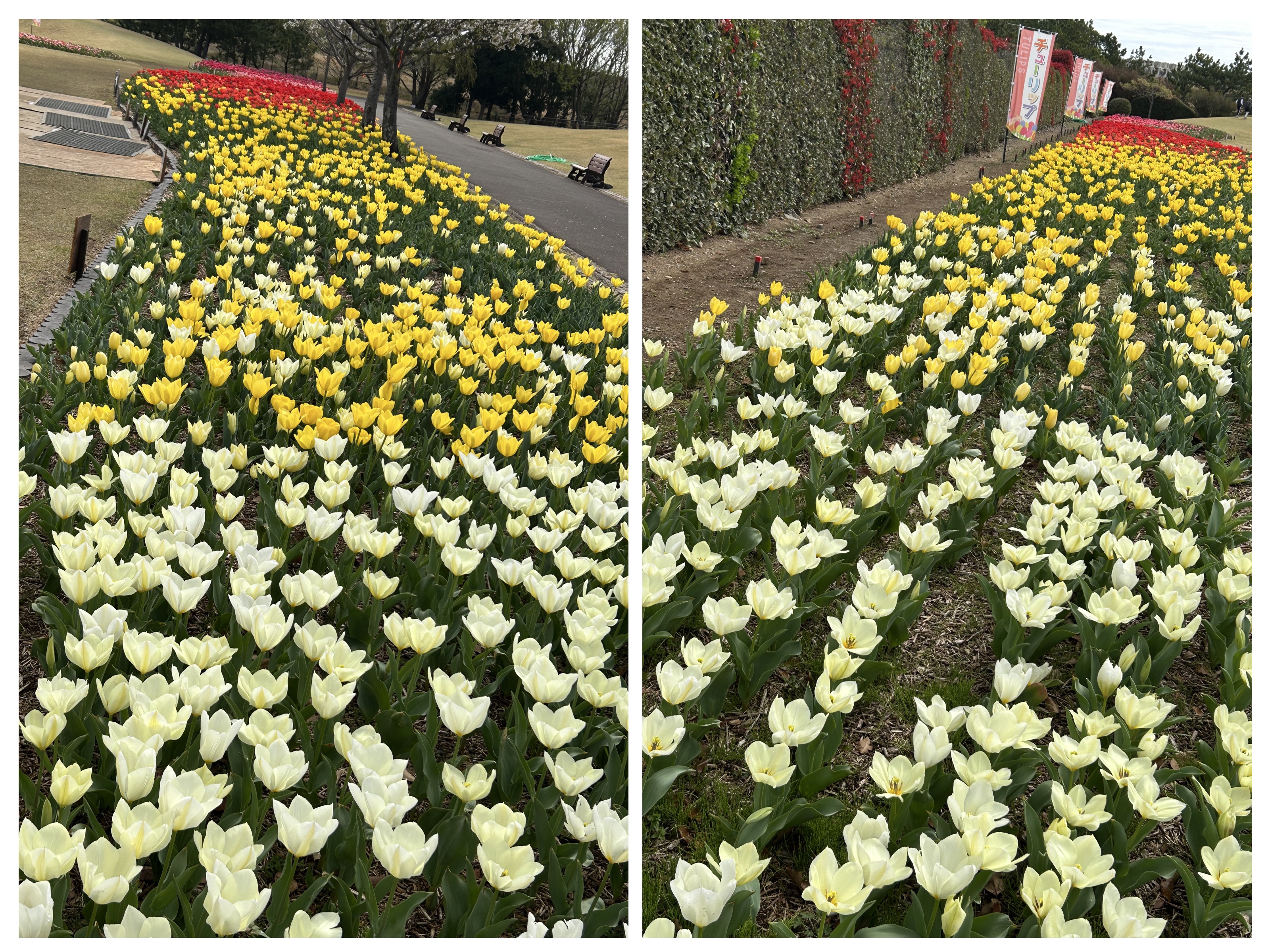 🌷今年もチューリップ🌷見て来たよ🌷 🌷公園の左右に並んでるチューリップ🌷 赤・白・黄色などなど チューリップと言ったら何色? ♡この色も好き♡ 🌷とっても綺麗でした🌷