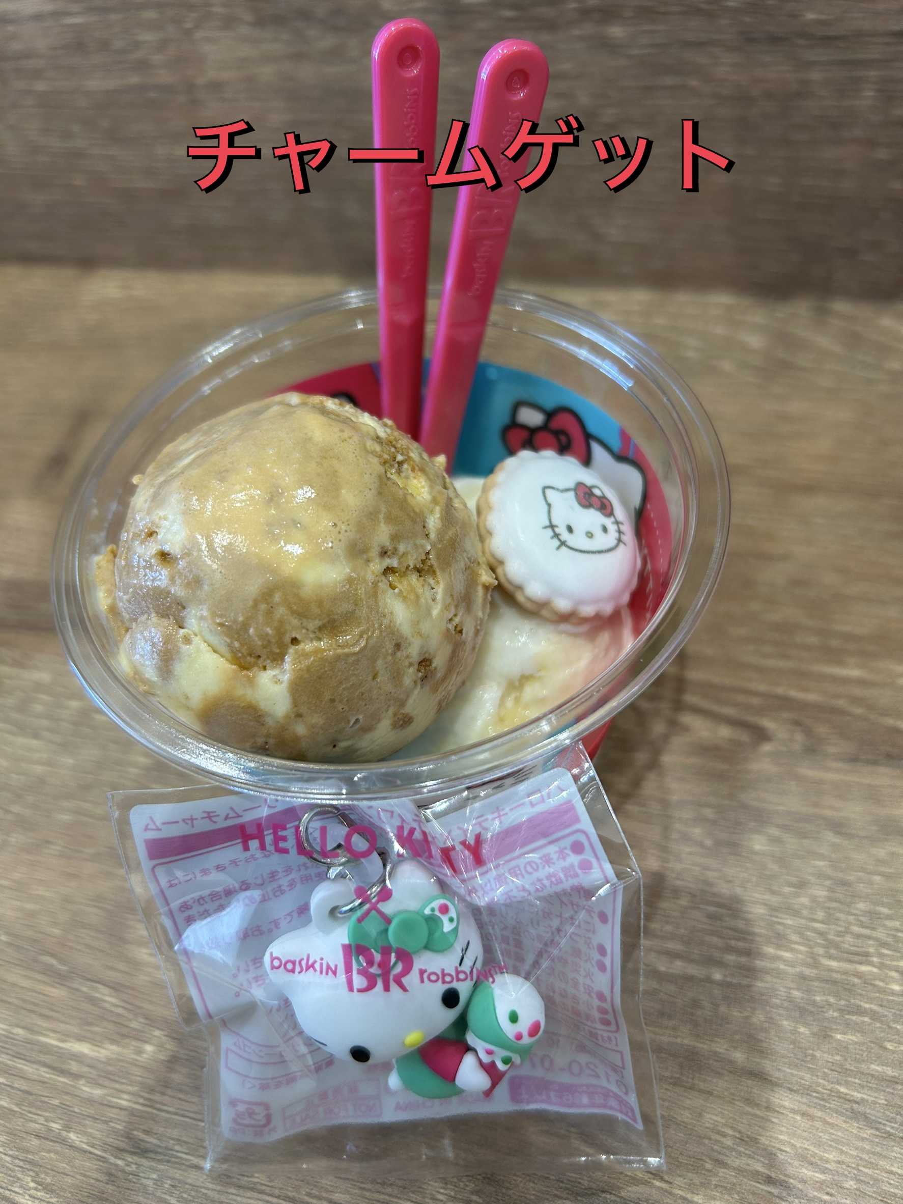 💞キティちゃんのチャームが欲しくて🥰 😃期間限定ゲット✌️ 💜チャーム可愛い🩷アイス入ってた入れ物も洗ってもってかえってきました🏠 🗻昨日の富士山🗻 今日は雲が多い日です☁️