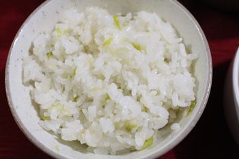 白ネギをオリーブオイルでじっくりと炒め、塩少々で炊いてみたらどんな炊き上がりとなるのだろうとの思いからトライしてみたものです。 味はまあまあでしたが、オリーブオイルの量を少なくすること、そしてネギの量が少なかったかなと思いました。オカズは豚肉、白菜、白ネギ、ほうれん草、そして初登場の紫青梗菜の味噌炒めです。ほかはスティックセニョールと茹で卵のマヨネーズ和え、スープもネギスープ(コンソメ味)です。