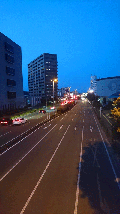 この頃、散歩していないなあと思ったのといつも車で買い物へ行くスーパーまで歩いてみようと思いブラリと夕方出てみました。 休日の熊本東バイパスはこんなものです。 4車線だった国道57号熊本東バイパスの6車線化が完了したのは平成18年2月23日とのことですから随分経ったものです。 薄暗くなってからの散歩は服装に気を付けなければなりません。