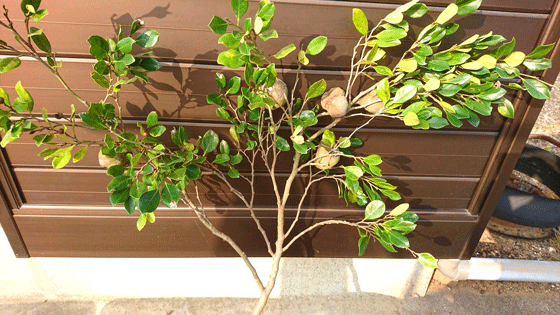 昨日、大きなイスノキの枝を切り落としたものの中にこんな実のようなものを付けた枝がありました。 表の方から 裏から 実のようなものを枝から切り離してみました。大きいものの一番長いところは10センチくらいありました。 割ったところ。中には種があるわけでもなく空っぽでした。そして、とても硬くて軽いのです。 思い出しました、幼い頃、この実のようなものを「さいびょう」と呼んでいたことを。そして、小さな穴を開けて吹いて鳴らしていました。