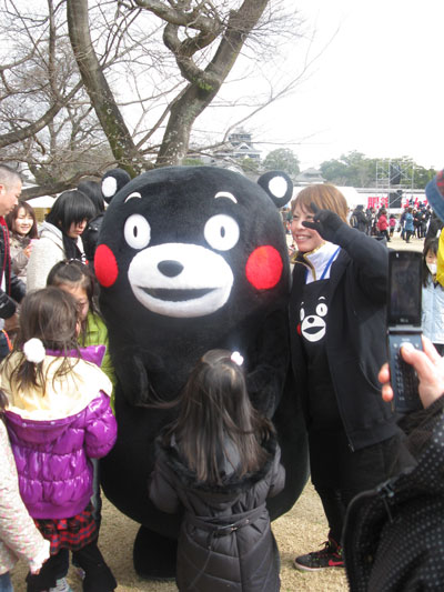 昨日の熊本城マラソン大会、フルマラソンのゴール近くに人だかりがありました。近づいてみると真ん中には、ゆるキャラグランプリに輝いた「くまモン」が居ました。一緒に写真を撮ってもらう人、触る人と子供から大人までどこへ行ってもくまモンは大人気です。くまモンの周囲は皆さん笑顔です。くまモンはいつも前からばかり見ているので背中のほうへ回ってみると可愛らしい尻尾がちょこんと付いていました。くまモンの経済効果は相当なものだそうですが、お金に換算できない癒しの効果、是も科学的に解明してみたら面白いかも知れません。前からばかりでなく、くまモンの後姿、背中も見て欲しい、お父さんやお母さんの背中みたいに広くて優しいから、そう思ったのでした。