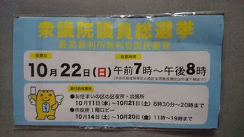 一昨日、福岡市中央区、西鉄グランドホテル前でもらった衆議院選挙投票日を知らせるマスク