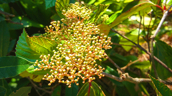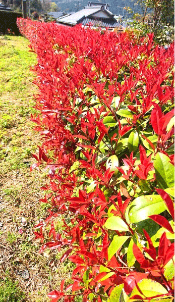 約90mある垣根は一斉に芽吹きはじめました。手前はイスノキ。