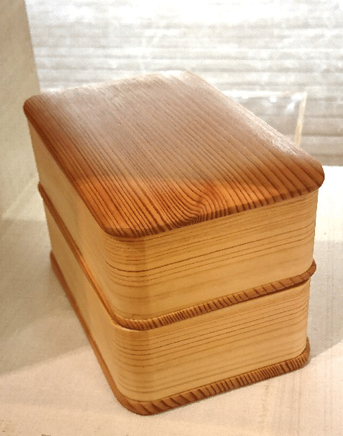 上の画像の右側の作品の蓋を取ったところです。寿司桶に使えるとのことですが、私は打った
