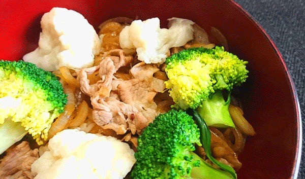なぜ、変わり豚丼なのかというと茹でたカリフラワーとブロッコリーを