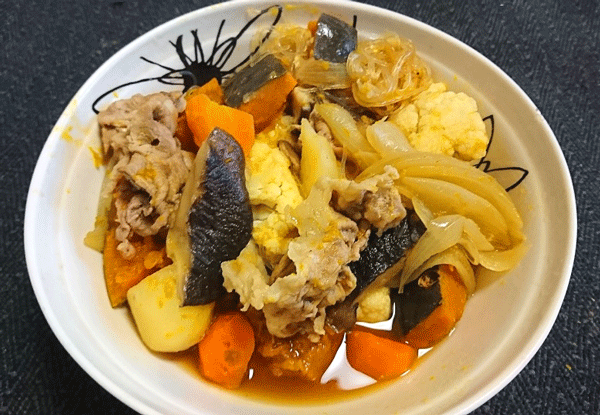 そして、こちらは豚肉、椎茸、玉葱、ジャガイモ(メークイン)、人参、