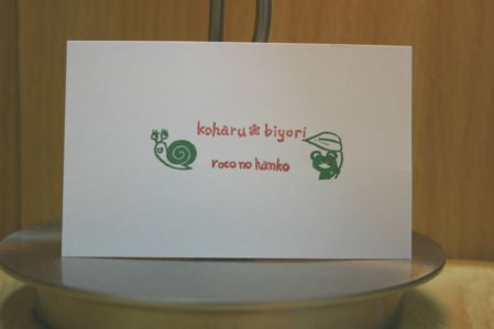 少し前に、ちょっと嬉しいことがありました。忘れもしない6月2日の夕方。いつものようにはるちゃんを保育所へ迎えに行くと担任の先生から小さな消しゴムを差し出されました。「これでカワイイはんこ、作ってもらえないかしら?」はるちゃんたちの通う保育所では出席した日に連絡ノートにはんこを押してこどもたちに持たせてくれます。そのはんこを作って欲しいということでした。6月のはんこだけはどうしても可愛くないと先生は言います。どんなはんこかと見てみると雨雲のはんこ。インクも濃い青なので、確かにう~ん・・・(^^;と思ってしまいました。「ただでさえ雨が多いのに、お帳面のはんこまで雨じゃあんまりじゃなぁ~い!!(>_<)」なるほど。で、作ってみました。6月なのでかたつむりとカエル。本当は1つで良かったんだけど図案が2つ浮かんだので2つ彫ってみました。3日の保護者懇談会の後早速先生にお渡しするととっても喜んで下さって次の日の連絡帳のはんこはrocoの彫ったはんこに変わっていました^^どちらのはんこも使ってくださるということでとってもムフフ・・・♪な気分なのです。はんこが変わった日他のお子さんが連絡帳のはんこを見て「かたつむりや~^^」と喜んでいるのを見て彫って良かったなと喜びをかみ締めておりました。しかも先生にはんこを渡しているのを見たHちゃんのおかあさんから「私も彫ってもらえないかしら?」と言われたのです!!実は私、人に頼まれてはんこを彫ったのは今回が初めて。しかもそれを見て2人目のご依頼。勿論どちらも無償ですがなんだか褒められているみたいでとっても嬉しいのです(*^^*)♪同じかたつむりのはんこで大きなものが欲しいということだったので彫りました。Hちゃんのお母さんにお渡しするものはきちんと持ち手を付けようと思い現在ニス塗り作業をしております。喜んでもらえると良いな。