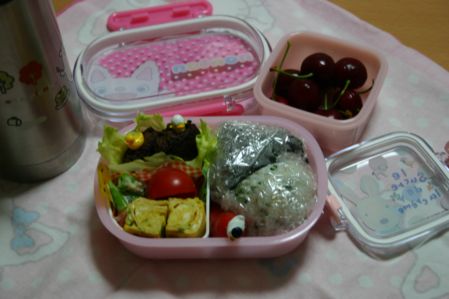 今日ははるちゃんの遠足第2弾です。先日の雨天により本日に順延になった遠足ですが今日も雨・・・ついていません。でもお弁当を持って行けることが嬉しいはるちゃんは雨でもあまり関係ないようです。今日も先日と同じように「きょうえんそくいくねんなぁ♪」と嬉しそう。「残念だけど、今日も遠足には行けないみたいよ。 雨降っちゃったもん。 またホールでお弁当食べれると良いね」と、雨で遠足には行けないと説明すると、今度は前回のことがあったからか「ほんまやなぁ~ じゃんねんやなぁ。 みんなでホールでたべるねん」すんなり納得。とは言え2回もお弁当を作らなければならないというのは料理苦手なrocoにとってはとっても大変なことです。なんせレパートリーがないんだから!!とにかくはるちゃんが喜ぶお弁当を・・・と考えた末、前回は好物のから揚げだったので今回ははるちゃんの好きな和風味のお弁当にしてみました。結構きれいに出来ました^^照り焼きハンバーグとネギ入りの卵焼きインゲンのおかかマヨネーズ和えにプチトマトおまけにタコさんウィンナーを入れておにぎりは鮭とじゃこで完成です。ギッチリ詰めてしまいタコさんがただのウィンナーになってやしないかと心配だったのでピックを付けて可愛さをアピールしてみました(^^;パパあひる、お子ちゃまあひる、ベビーあひるですこのピック、可愛いでしょ(*^^*)お気に入りです♪プチトマトを入れたところをはるちゃんに見られ「トマトいれんといてぇ~!!」と拒否られたのですが「美味しくなるおまじないしたから すっごく美味しいよ^^」と言うと「じゃ、いいか」みたいな顔をしていました(笑)ちなみにプチトマトは何も味付けしていません。今日も残念なことに遠足には行けなかったのですが先生の配慮で保育所に併設されている子育て支援センターに行き貸切で遊ばせていただいたとのこと。普段なかなか遊べないところで色んなオモチャで遊べてとっても楽しかったようです。ちょっとした遠足気分を味わい、お弁当はホールでみんなでわいわいと。帰ってきたはるちゃんに聞いてみるととても楽しかったのがよく分かりました。お弁当も勿論完食。次こそは遠足行けると良いね(^^)