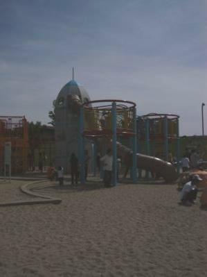 本日もまたまた公園に遊びに行きまんまと日焼けしてしまいましたrocoです、こんばんは。さて、恒例になりました「近所の公園に遊びに行きました」報告ですが今日はすんごい発見をしてしまいました。いつも遊んでいるのはロケット広場というところちなみにrocoが散々騒いでいたロケット型滑り台がこれです。逆光で撮ってしまって見にくいのですが結構大きいでしょ?これがはるちゃんは大好きで、一人で上まで登って行って一人で滑って降りてくるんです。でも今日は大きいお兄ちゃんたちが滑り台の上に登り滑り台の出口を塞いでしまったり人がやたらと多くて怖い感じがしました。小さなはるちゃんが落ちてきたらどうしよう・・・そればかり心配してロケット内部のはしごをずっと見ていたらなんと!!上から女の子が落ちてきました!Σ( ̄□ ̄;小学3年生くらいだと思いますストン!と落ちてきて背中を強く打ち付けてしまいました。その場にはrocoしかおらずオロロ・・・落ちてすぐは全然動かなくて次の瞬間、火がついたように泣き出したのでとりあえず大丈夫だと分かりましたがなるべく動かないように言って名前を聞き親御さんを呼んで事なきを得ました。少しの間体の震えが止まりませんでした。ちょっとした恐怖体験をしている間にはるちゃんは余裕しゃくしゃくで滑り台から降りてきてrocoと再会「もっかいする~♪」とロケットに入ろうとしたのですが先ほどのことがあったので「今日は人が多いから ロケットはまた今度にしよう」と説得し少し公園内を散策することにしました。いつもは恐竜広場や芝生広場の方に行くのですが今日はちょっと趣向を変えて逆の方へ行ってみることに。大きい子の公園ばかりあって小さい子が遊べる遊具が見当たらないので不思議に思っていたのですが、やっぱりありましたよぉ~。3歳くらいまでの子が遊べる遊具がある公園発見しました!!と、思ったら・・・その更に奥に突如現れた謎の要塞。なんじゃこれは~!!??と驚いているとはるちゃんはさっさと要塞の内部へ・・・。中には城がありました(--;はるちゃんはずんずん進んでいき要塞の上部にある吊橋なんてなんのそのほらこの通りこの後更に恐ろしい吊橋に遭遇したのですがあまりの怖さに写真を撮る余裕さえなくしっかりはるちゃんに置いてけぼりにされたrocoであります(==)今日は本当に怖い思いを沢山しました。でも子供ってこうやって大きく逞しくなっていくんだなと実感した日でもありました。手を貸しすぎるのもいけないでもいざという時、すぐに助けてあげられる距離に居てあげなくては・・・。心配だけどはるちゃんを信じて出来るだけ見守るだけにして彼女の自主性や積極性を伸ばしていけたらと思った一日でした。