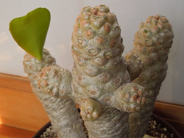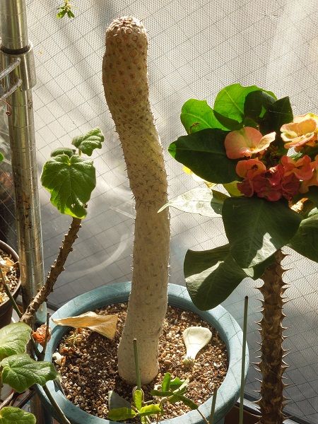 こちらは枝が出ないで伸びていましたが、最近緑のツブツブがでてきました。なんだろう???