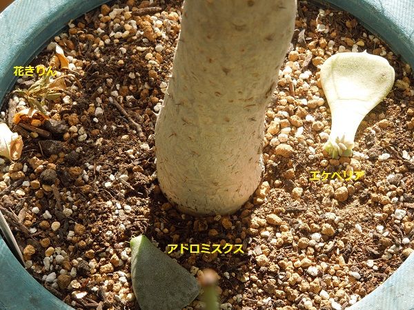 断水中からか、昨年発芽した花きりんは枯れてしまいました。放り投げておいたエケベリアとアドロミスクスは葉が出たり、根が出たり・・・