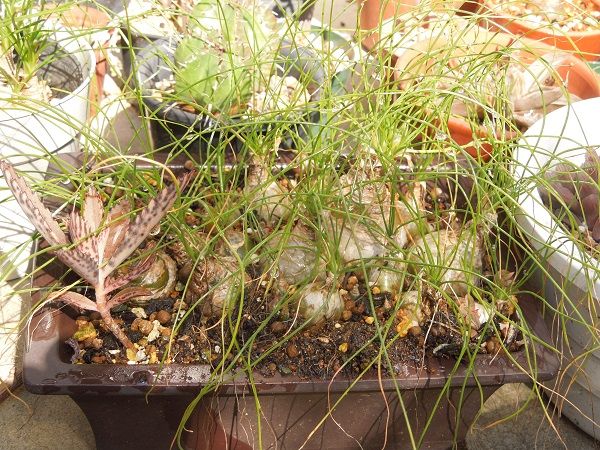 昨年は3月末に出したら葉が傷んでしまったがその後持ち直したし、今回は北風の当たらない南側軒下に置いたのでどおだろう・・・