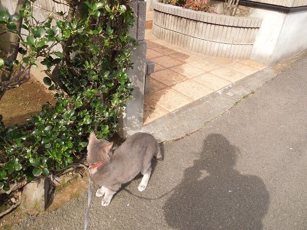 天気がいい日は外に出たがる小平太くんだが庭には平気で出るのだが、ビビりで道路に出ると直ぐに戻りたがる。