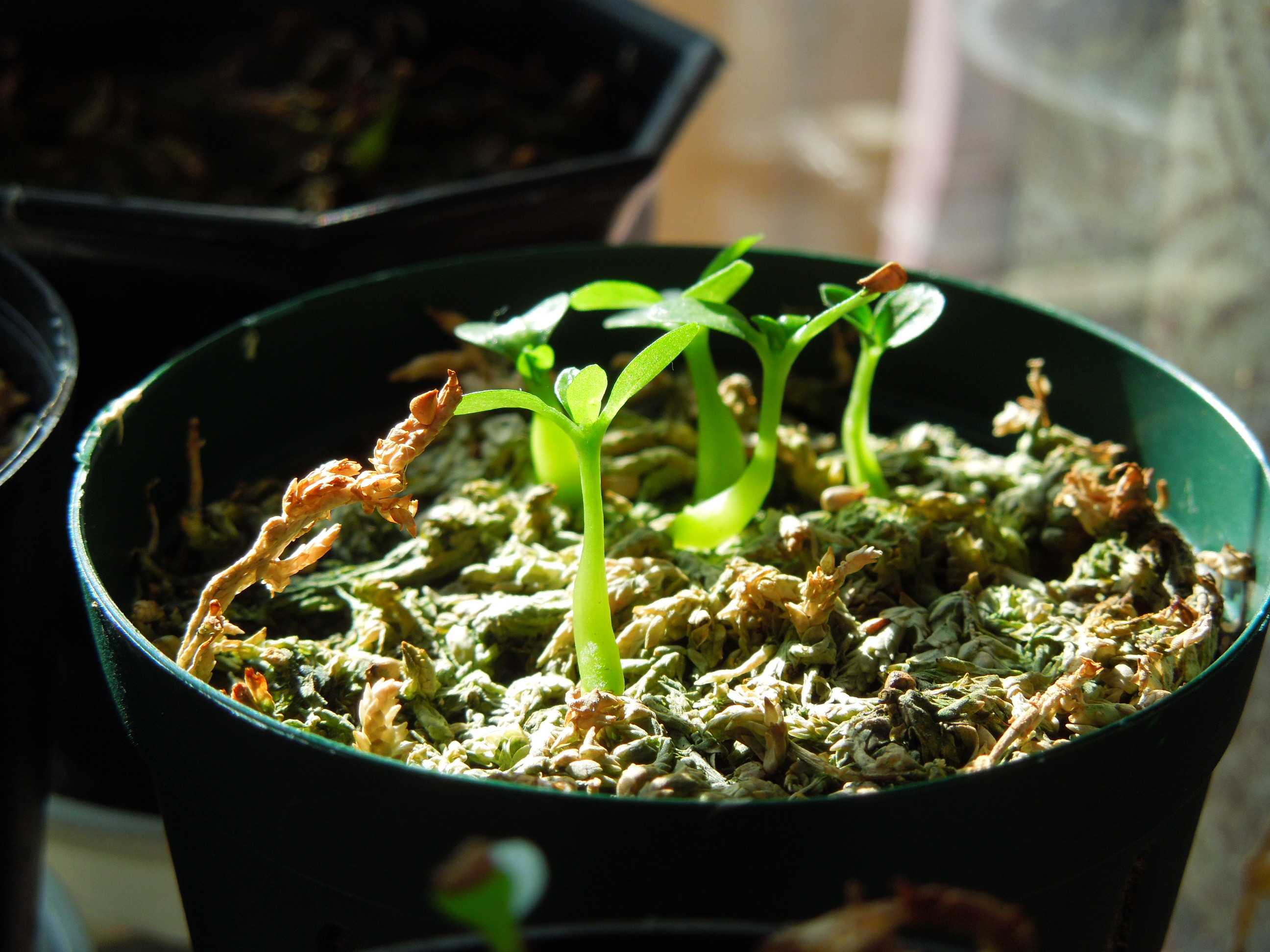 ホヘンベルギアの発芽を蒔いてから1週間少々。