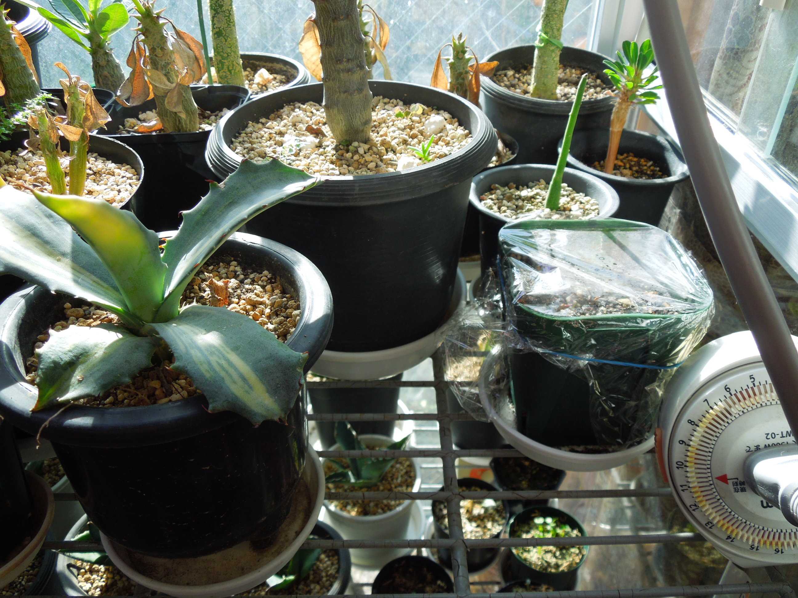 最上段に置いてある植物の方が育っているような気もするが・・・