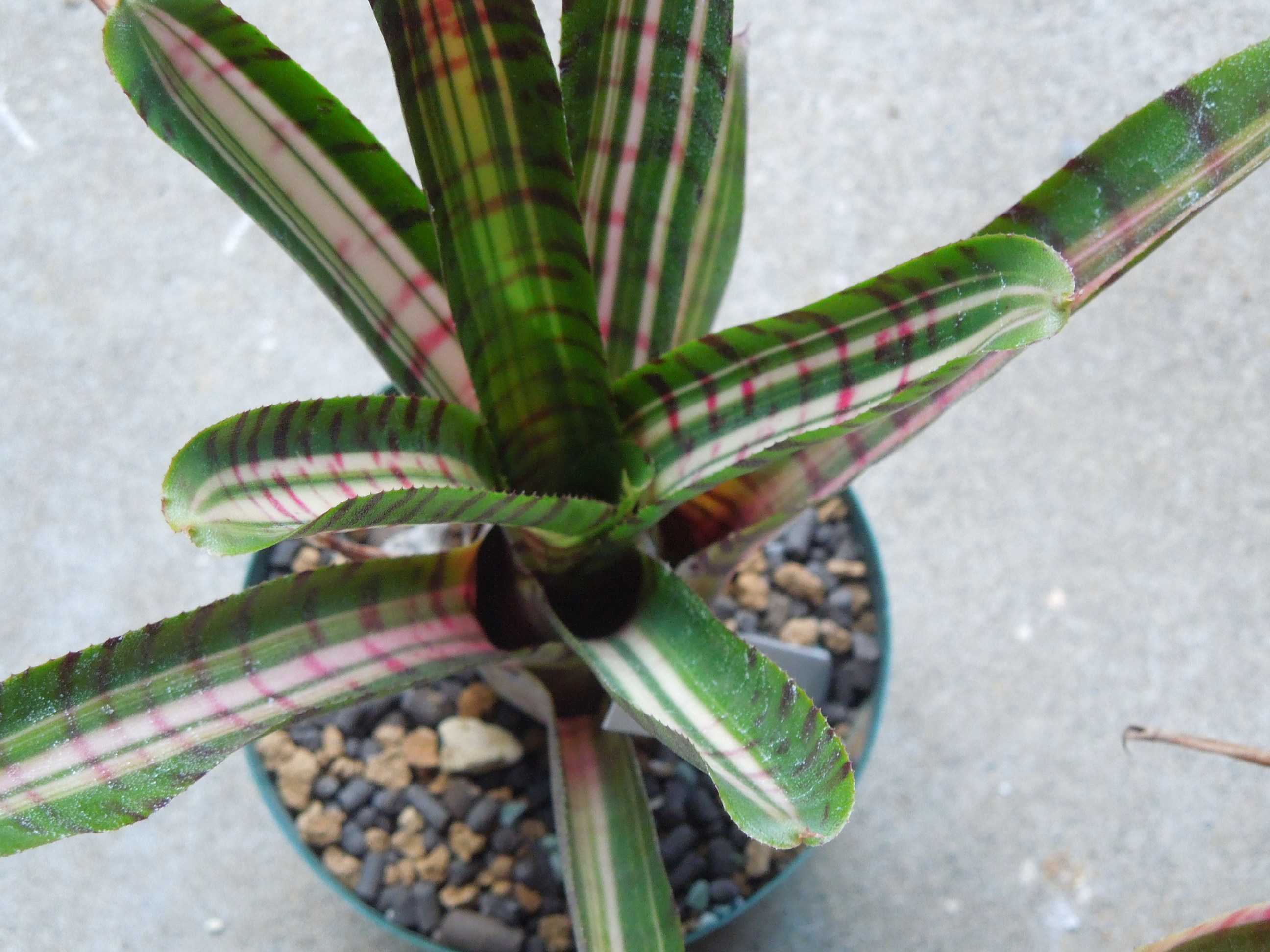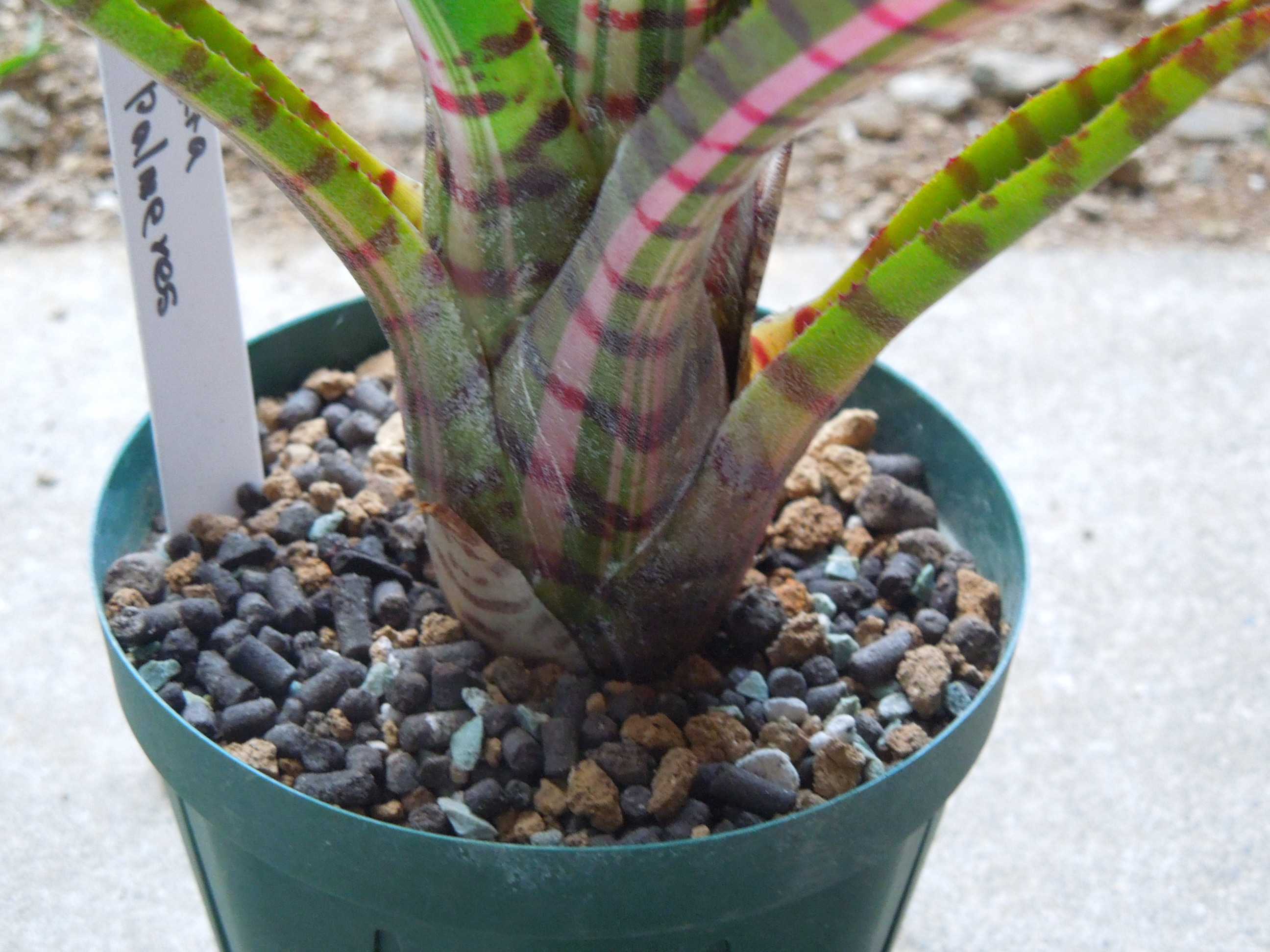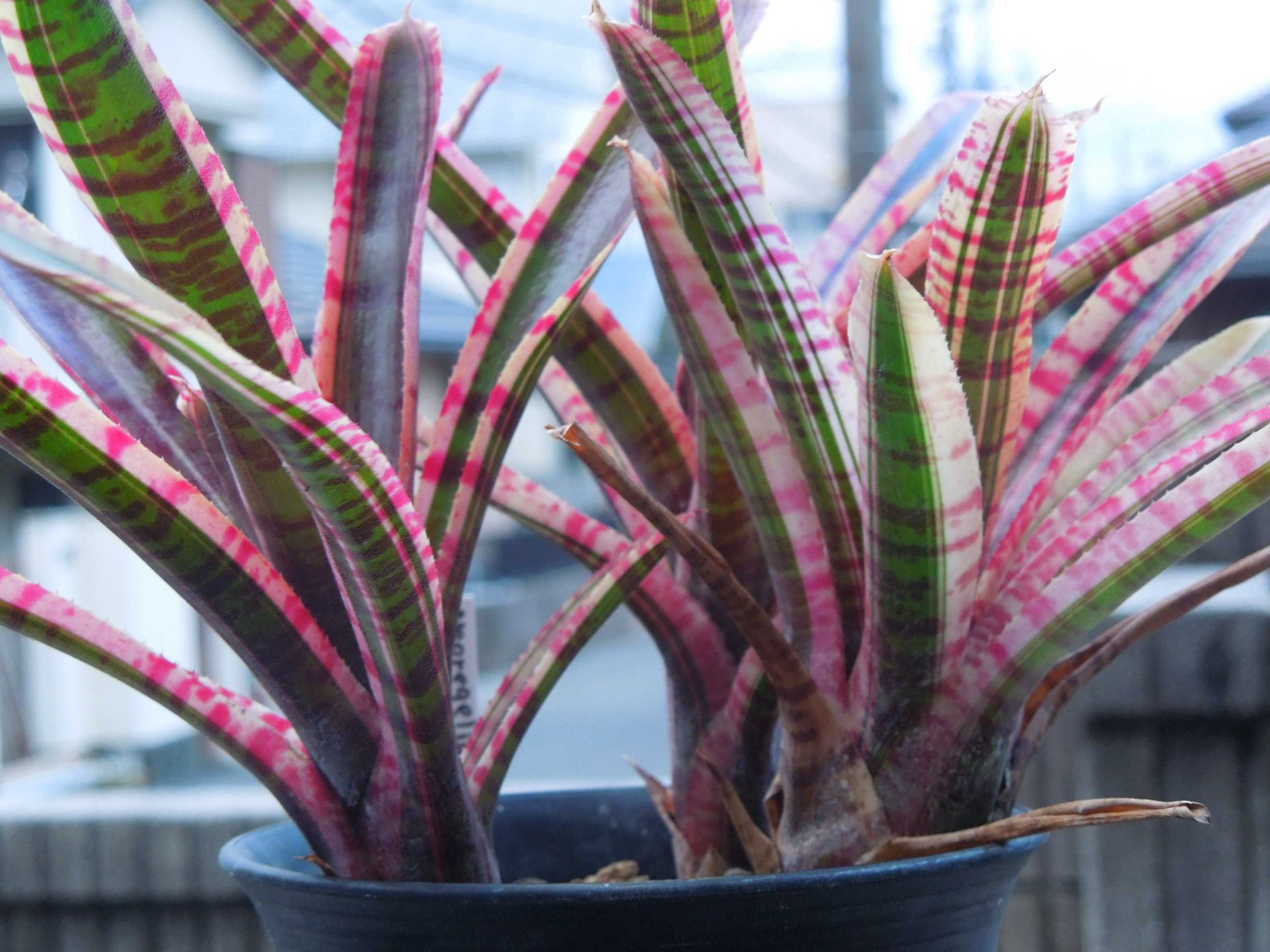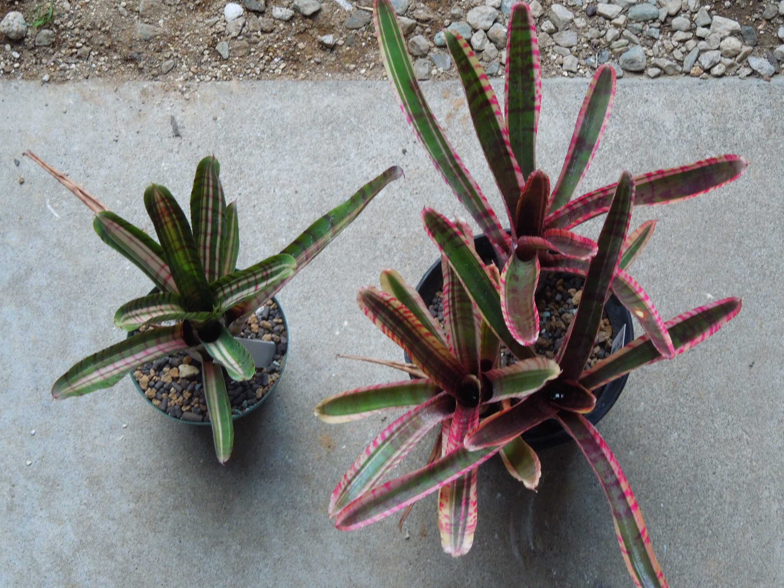 ネオレゲリア・パルマレス(左)とホワイトホットエンバーズという名前の壺。