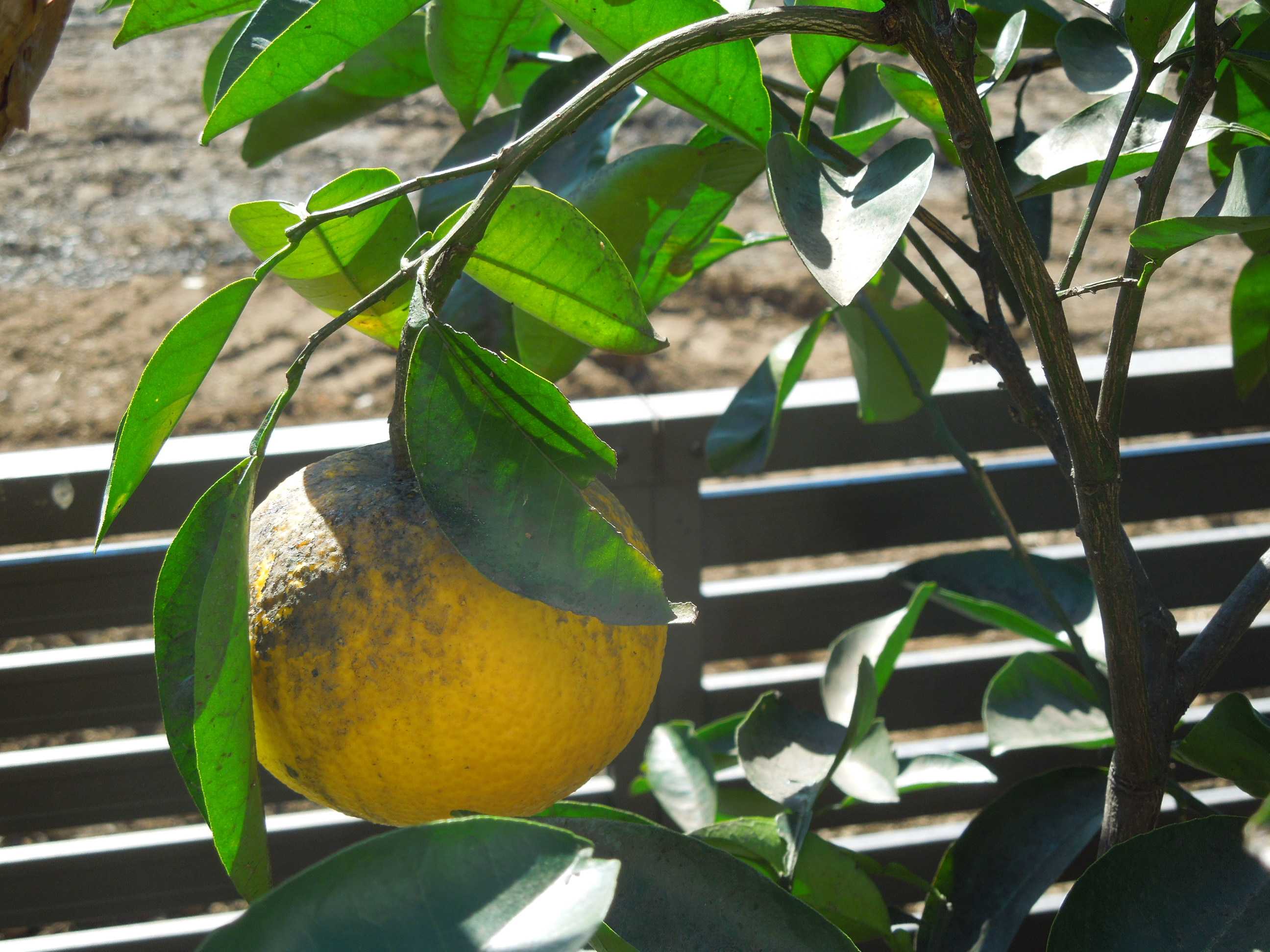 伊予柑~木の脇を歩いたときに触れると実が落ちるので、落ちた実を拾って2~3日置いてから頂きます。