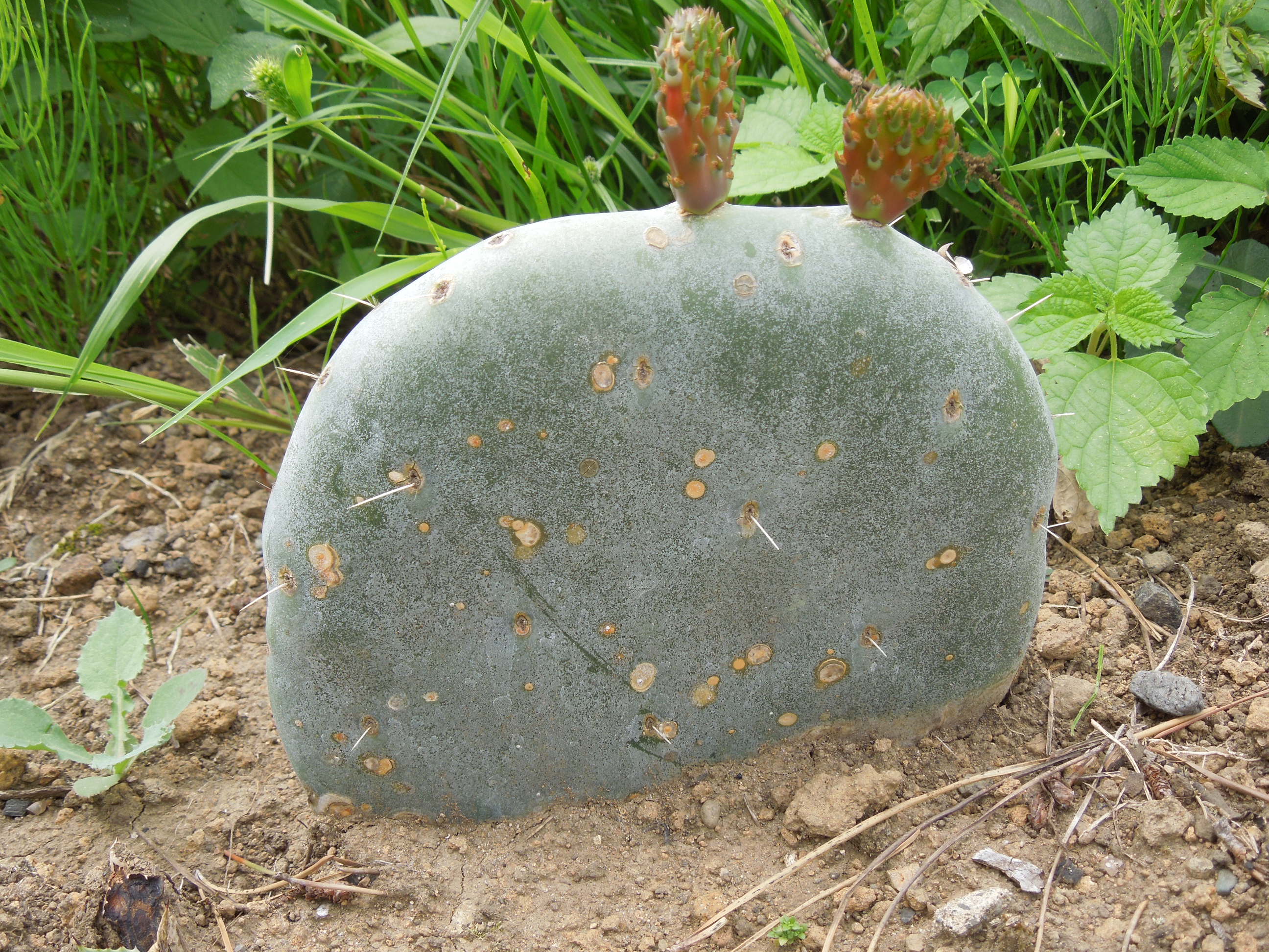 3段目をカットして植え付けた大丸盆も新茎節が出てきた。
