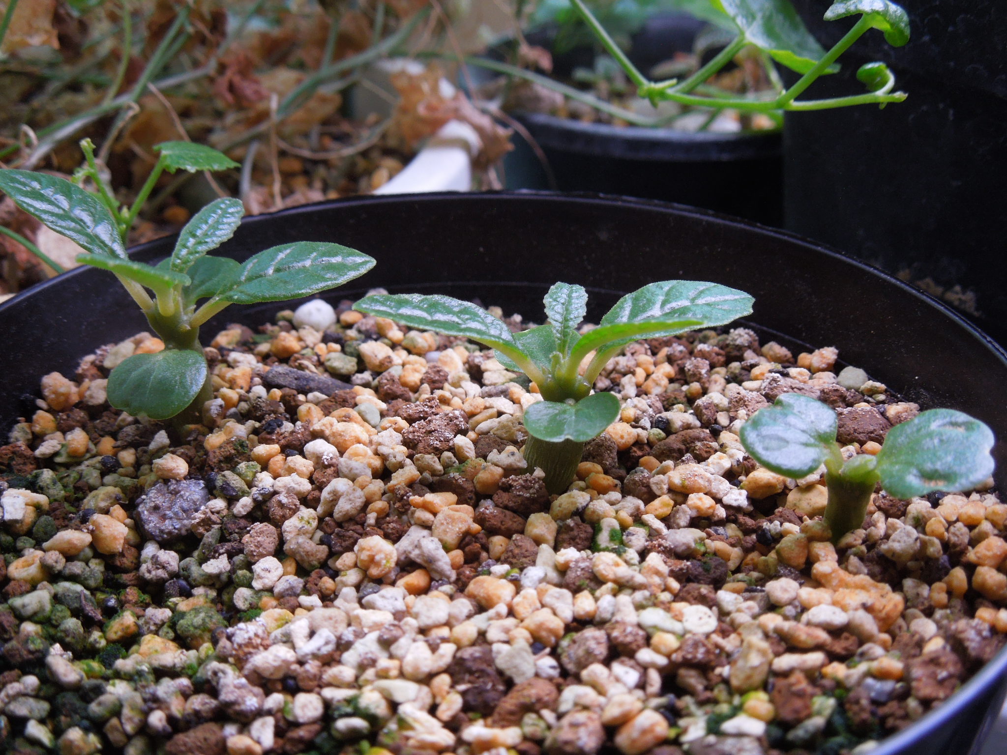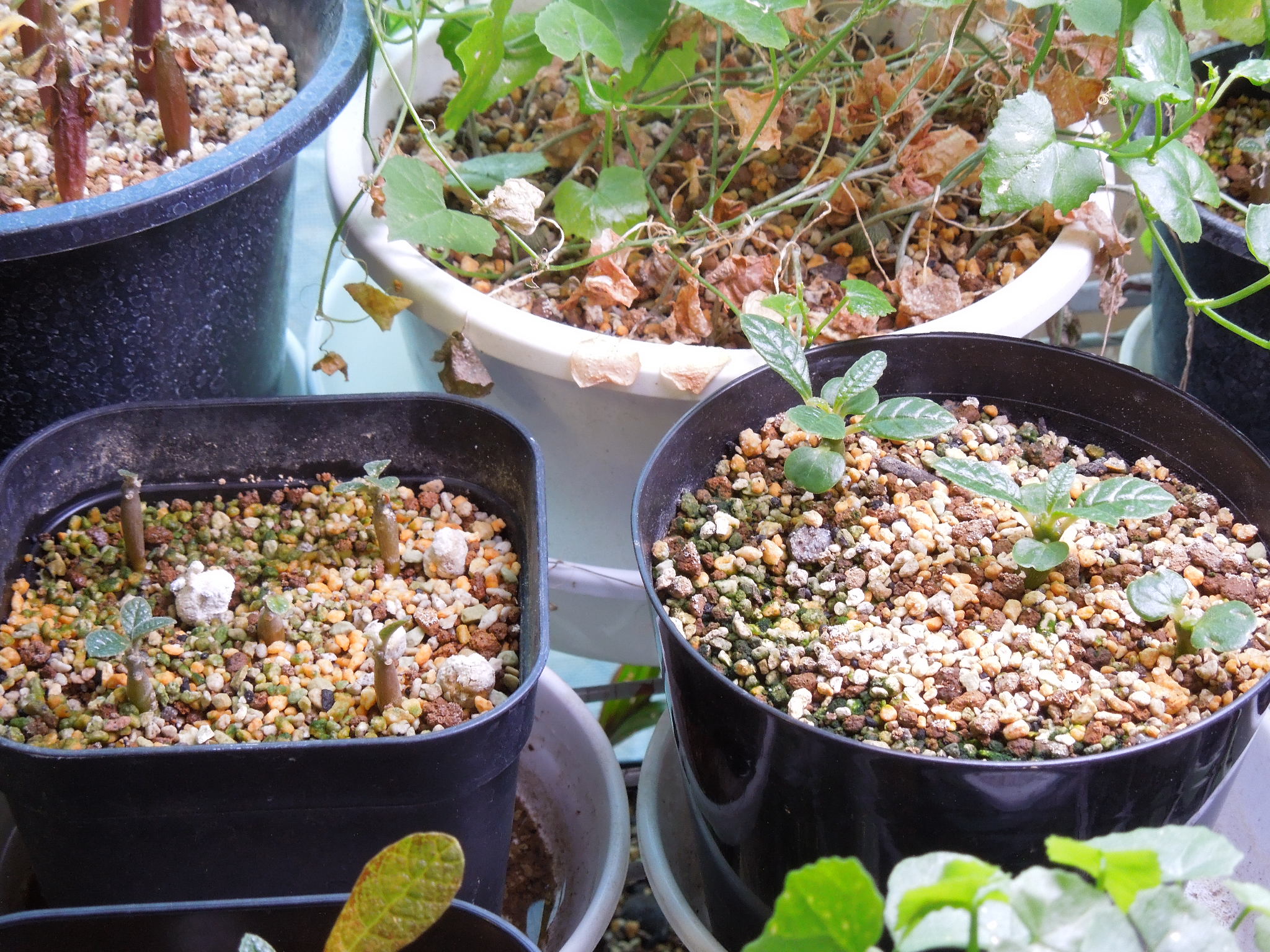 6月蒔きの実生苗(左)~発芽して1ヶ月くらい経った7月に屋外に出したら葉を落としてしまい・・・