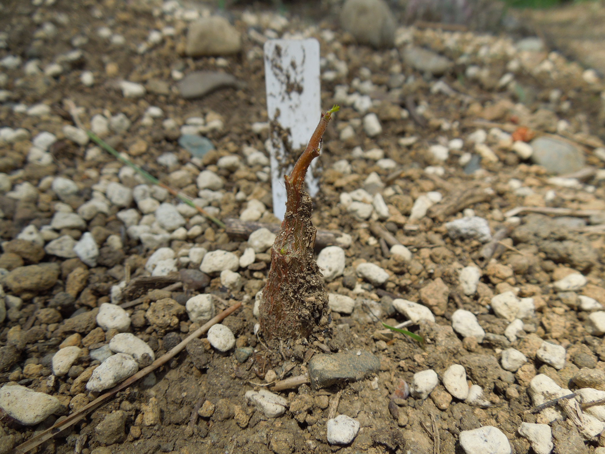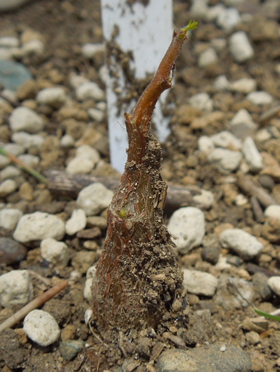 葉を落として、苗が新芽を出していた。