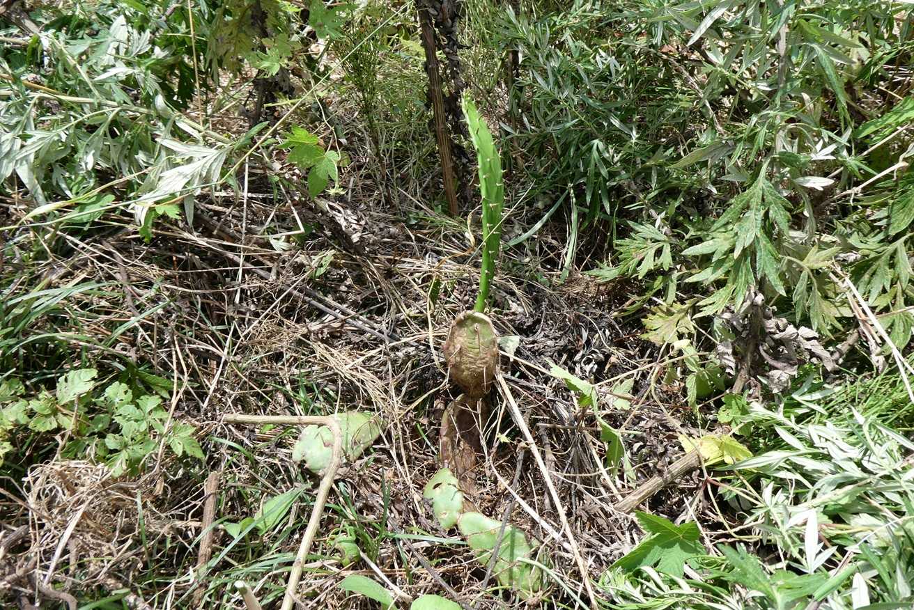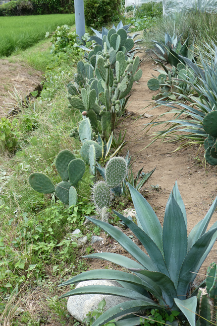 土に面している側の刺座から根を出し、反対側から新茎節を出している。