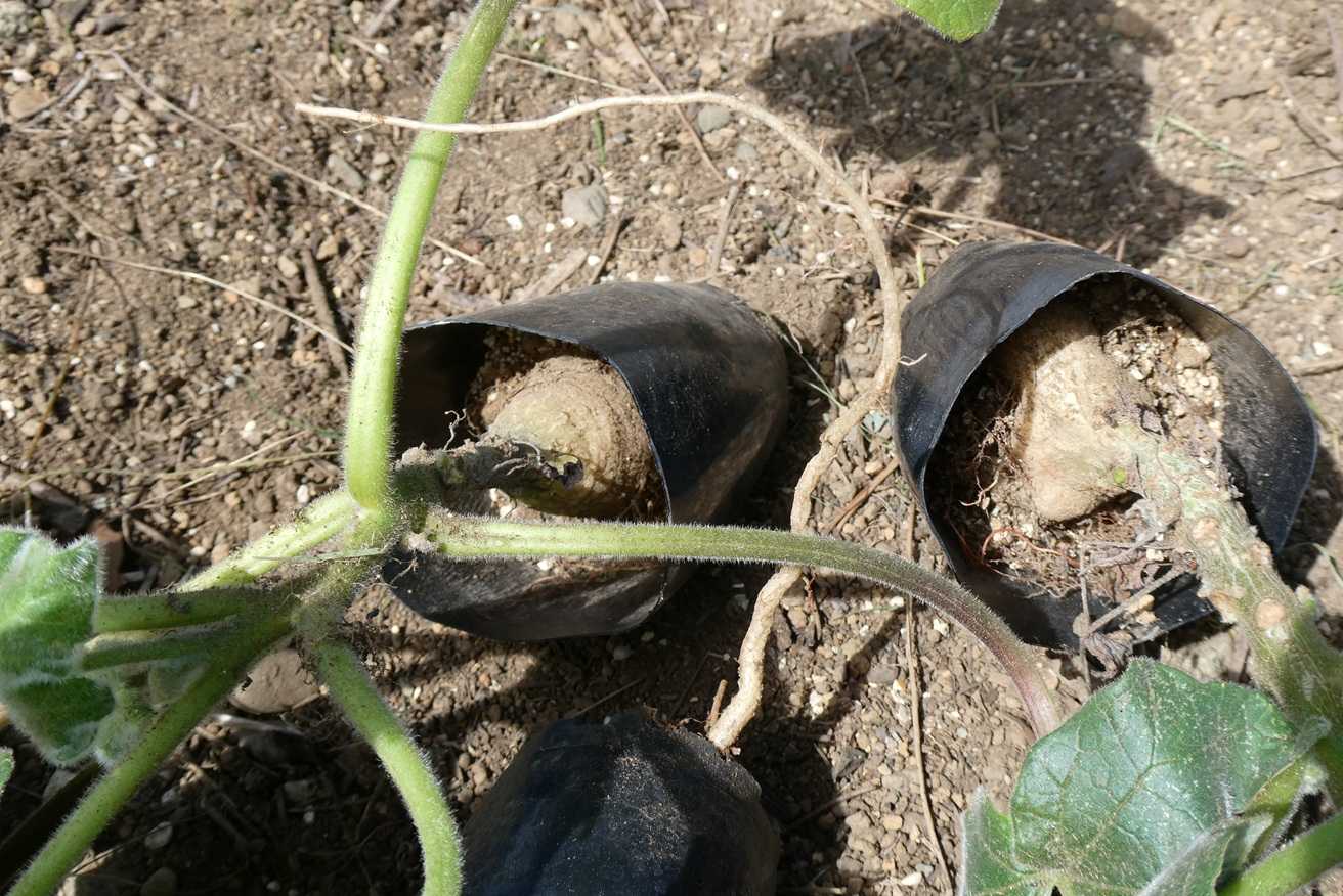 70サイズの角鉢に植えてあった苗は3.5号深鉢に・・・