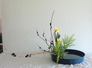 きょうはお天気も良く暖かかったので、少しは雪も融けたのですが、明日からまた寒波襲来だそうです土曜日の朝の予想気温が低く、研究会で早い出勤になるので、駅までの坂道が滑りそうで今から心配していますと言うわけで、週末は1月の研究会です。今月は盛花です。2級の課題は黒芽柳、ラッパ水仙2、ソリダコ3「色彩盛花・花型自由」 Eさんは傾斜型で…。3級の課題は桜、金魚草2、雁足3「色彩盛花・直立型」 雁足の扱いに苦労していたお二人でした本科の課題はチューリップ2、スイートピー3、霞草少々「花意匠・たてるかたち」 可愛い取り合わせ、こども教室にもいいかもこっちも見てね 「おばさんのつぶやき」 ブログランキングに参加しています。 今年もポチっとお願いします