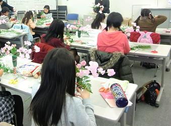 平成24年度としては9回目、今年初めてのこども教室でした。きょうは節分なので、季節のお話としては節分と立春のお話、そしてバレンタインデーのお話をして、きょうのお花は「プレゼントのお花」です。そのままプレゼントできる花と言うことで、シャンパングラスにオアシスを使い、リボンを結びました。初等科さんは「たてるかたち」本科さんは「ひらくかたち」をベースに、花器に剣山で生けるときよりは決まりごとを緩くしたアレンジ風の作品になりました。 「このお花はいつまで持ちますか?担任の先生にあげたいから」と言うお子さんもいました。「先生はイケメン?」と聞いたら、「イケメンではない…」とか今週末、2/9(土)に旭ヶ丘の青年文化センターにおいて第2回目の「すばらしき伝統文化フェア」が開催されます。私たち「小原流仙台地区こども教室」も仙台市の伝統文化活用活性化事業に参加して、補助を受けて運営しています。そこに参加している日本伝統文化のこども教室の団体による発表会です。上記のサイトには昨年の様子が掲載されていますが、今年も私たちのこども教室も参加します。子供たちによるお手前のお茶席なども楽しめます。お近くの方はぜひお出でください。こっちも見てね 「おばさんのつぶやき」 ブログランキングに参加しています。 きょうもポチっとお願いします