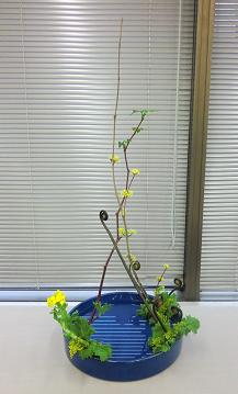 2月1回目のお稽古です。昨日はかなり雪が降りました。きょうは、気温は高めで昨日の雪も融けました。今年は寒暖の差が大きく、体調を崩しやすいと思います。インフルエンザも流行っています。きょうの稽古も急に体調を崩してお休みになった方もありました。きょうは本科のHさんはこの季節の定番とも言える桃と菜の花で「花意匠・たてるかたち応用」を それ以外の方は連翹、アイリス、玉シダ で「色彩盛花」をお稽古しました。玉シダが5枚入っていたので、様式に準じて客枝に使う一株いけにしました。こっちも見てね 「おばさんのつぶやき」 ブログランキングに参加しています。 きょうもポチっとお願いします