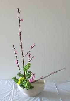 きょうは風も無く穏やかなお天気でした。大雪が予想された昨日も実際にはあまり降る事も無く、それほど寒いわけでもありませんでした。このまま春になって行くと良いなあと思っていますが…今週末は2月の支部研究会です。今月は4級以上は瓶花です。2級の課題は芽出し木苺、薔薇3、晒し山シダ2「瓶花・花型自由」 Eさん傾斜型で。3級の課題は桃、菜の花3「瓶花・直立型」 5年振りお稽古再開のYさん、やめた時の資格は2脇だったけど、慣れるまで…と言うことで今回3級のお花をチョイスお休み中は盛花をいける事があっても瓶花は無かったそうでまさに5年ぶりでした Sちゃんは昨日お稽古、可愛い2歳のMちゃんホワイトボードをお手伝いしてくれます。准教授の課題は芽出し紫陽花5、金魚草3「色彩盛花・直立型」 本科の課題は玉シダ3、アネモネ3「花意匠・ひらくかたち」 これは花材が少なすぎて難しいですこっちも見てね 「おばさんのつぶやき」 ブログランキングに参加しています。 きょうもポチっとお願いします