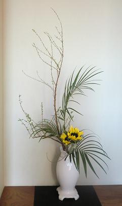 きょうから2月です。先日までとは一転、ここ数日は暖かくなっています。日陰で根雪になっているところは車などで踏み固められているので、なかなか融けませんが早速親先生の教室は2月の1回目のお稽古です。研究会の後なので、花材費がかからないように花屋さんお任せにしたようです。花屋さんには春の花が並んで華やかになってきたと思っていましたが、まさか夏の花である向日葵まであるとはこっちも見てね 「おばさんのつぶやき」 ブログランキングに参加しています。 きょうもポチっとお願いします