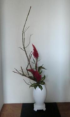 花展やなにやら忙しくて、10月は研究会のお稽古1回だけしかいけなかった親先生の教室に今月は1日から行って来ました。花屋さんにおまかせの花材だったようですが、久しぶりに錦木をいけました。槍鶏頭の色も素敵でしたこっちも見てね 「おばさんのつぶやき」 ブログランキングに参加しています。 きょうもポチっとお願いします