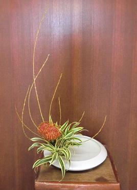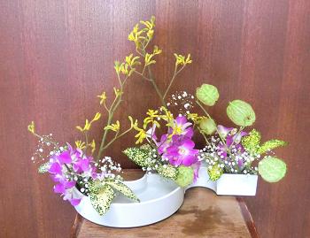 きょうは親先生の教室に行きました。研究会も終わり、今週は例によって花屋さんにおまかせの花材のようでした。とてもとても久しぶりにいけた気がしたこの石化金雀児ですが、よく4級か3級くらいで研究会の課題だったりもします。私はあえて後ろに引いて「かたむけるかたち」にしてみましたが、いつも下のクラスの方達がいけている花材にしては苦戦というのは、石化していない部分のひげのような枝を矯めたら、同じ方向に矯めたつもりなのにあっちこっち向くんですこの花材こんなに難しかったっけこっちも見てね 「おばさんのつぶやき」 ブログランキングに参加しています。 きょうもポチっとお願いします